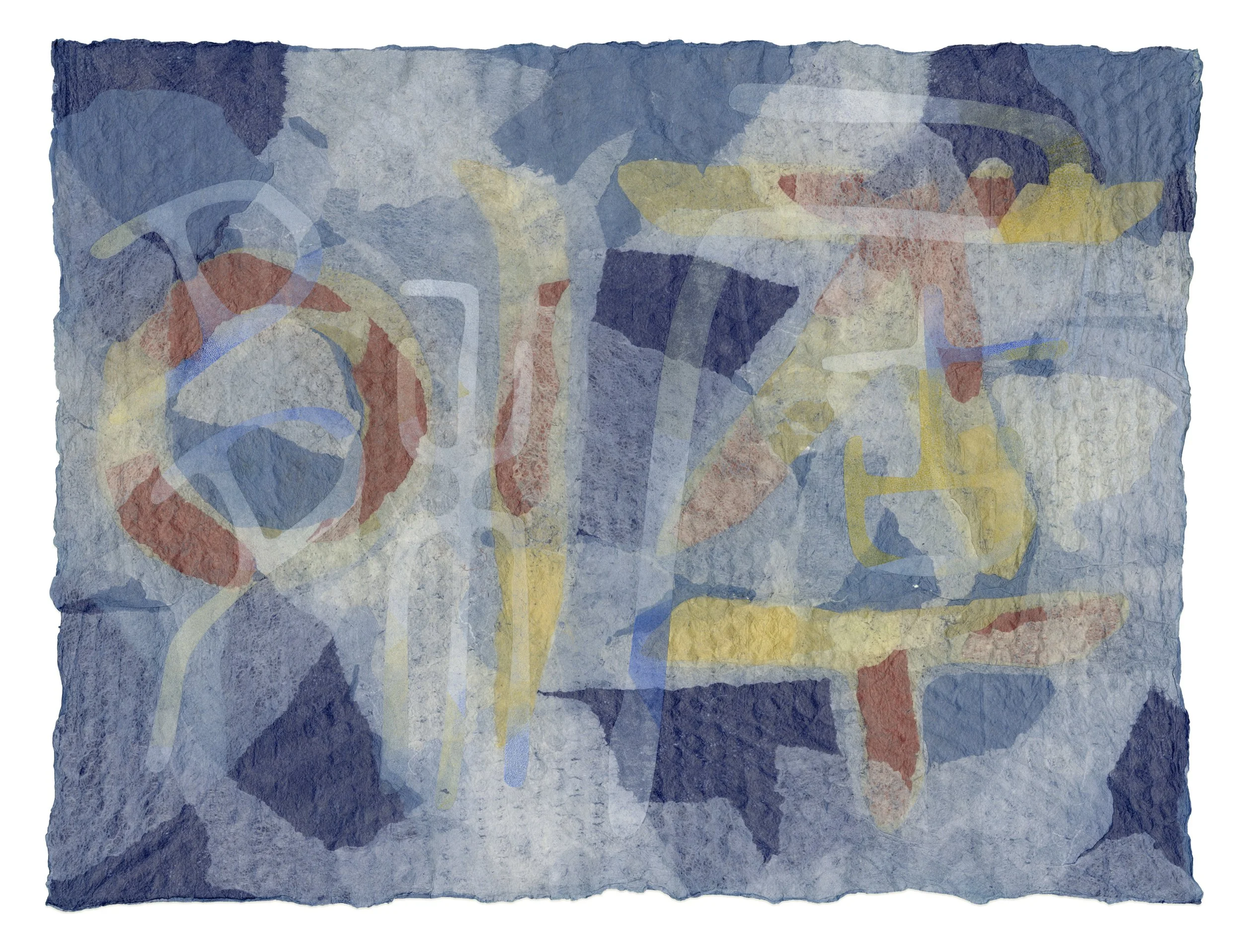 Destiny, in Two Tongues, Joomchi with Hanji and monotype, 18 x 23.5 in, 2025